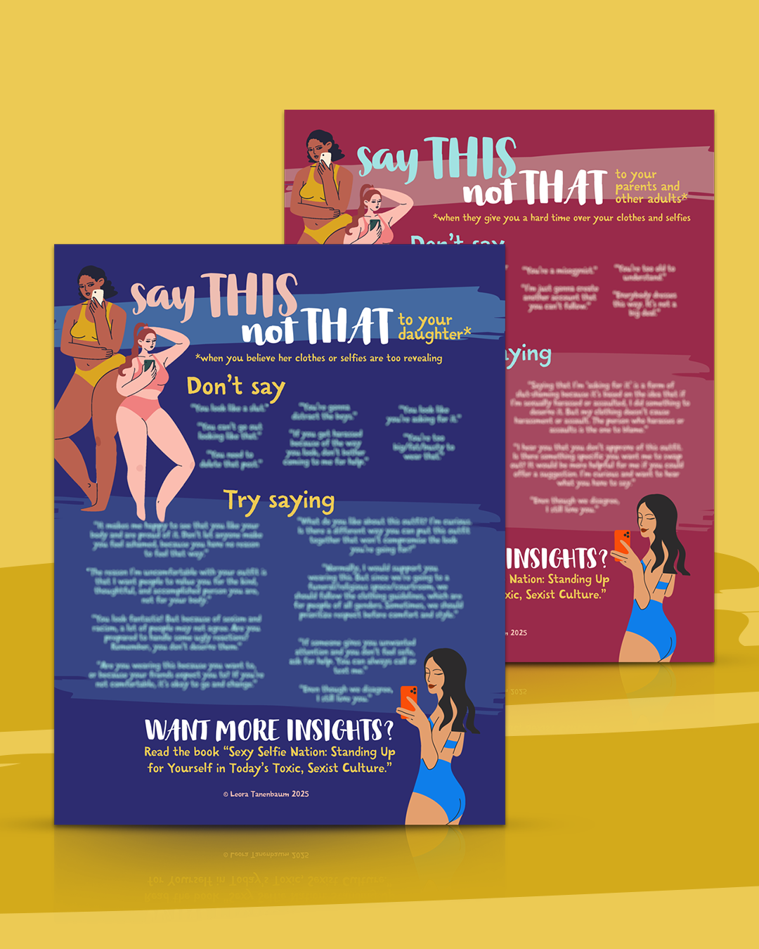 I offer 2 SAY THIS, NOT THAT flyers: one that tells parents how to talk with their daughters about their appearance.. and one that offers guidance to daughters when their parents give them a hard time.